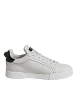 Dolce & Gabbana White Black Leather Low Top Sneakers Shoes