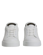 Dolce & Gabbana White Black Leather Low Top Sneakers Shoes
