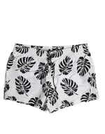 Dolce & Gabbana White Black Print Beachwear Shorts Swimwear