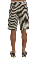 Dolce & Gabbana White Black Striped Hemp Casual Shorts