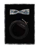 Dolce & Gabbana White Blue Silk Bowtie Leather Belt Gift Box Set