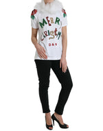 Dolce & Gabbana White Cotton Christmas Sequin Fur T-shirt