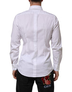 Dolce & Gabbana White Cotton GOLD Long Sleeves Formal Men Shirt