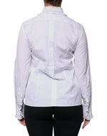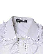 Dolce & Gabbana White Cotton Long Sleeves Ruffle Collar Top
