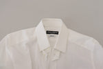 Dolce & Gabbana White Cotton Slim Fit Formal Dress GOLD Shirt