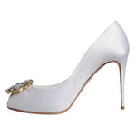 Dolce & Gabbana White Crystals Peep Toe Satin Pumps Shoes
