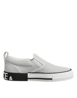 Dolce & Gabbana White Dotted Leather Slip On Men Sneakers Shoes