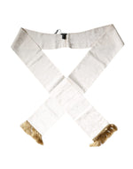 Dolce & Gabbana White Floral Jacquard Skinny Fringes Scarf