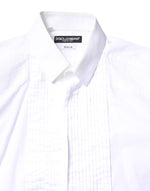 Dolce & Gabbana White GOLD Cotton Poplin Bib Men Dress Shirt