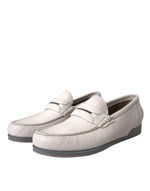 Dolce & Gabbana White Gray Leather Slip Mocassin Shoes Loafer