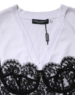 Dolce & Gabbana White Lace Cotton V-Neck Short Sleeves Top