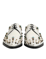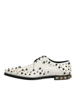 Dolce & Gabbana White Leather Crystals Embellished Derby Shoes