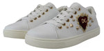 Dolce & Gabbana White Leather Gold Red Heart Sneakers Shoes