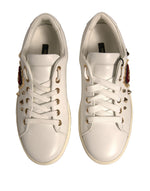 Dolce & Gabbana White Leather Gold Red Heart Sneakers Shoes