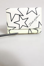 Dolce & Gabbana White Leather Trifold DG Star Print Card Holder Wallet