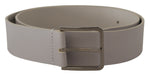 Dolce & Gabbana White Leather Wide Silver Metal Buckle Belt