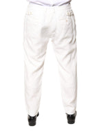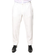 Dolce & Gabbana White Linen Mid Waist Men Dress Pants