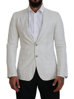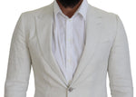 Dolce & Gabbana White Linen Slim Fit Jacket Blazer