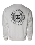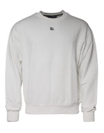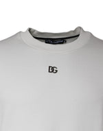 Dolce & Gabbana White Logo Cotton Crew Neck Pullover Sweater