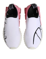 Gorgeous, 100% Authentic Dolce & Gabbana Sorrento sneakers in a stylish white and pink color combination. These low-top slip-on sneakers feature a modern, sporty silhouette with a stretch-knit upper for maximum comfort and flexibility. The design is finished with logo detailing and a sculpted rubber sole, making them both fashionable and functional.