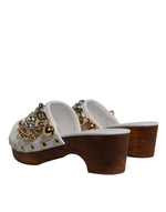 Dolce & Gabbana White Raffia Clogs Bejeweled Chain Sandals Shoes