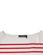 Dolce & Gabbana White Red Stripes Cotton Long Sleeves Top
