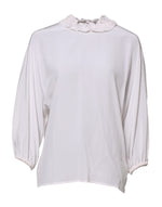 Dolce & Gabbana White Ruffled Neckline Blouse Pullover Top