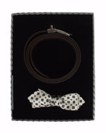 Dolce & Gabbana White Silk Bowtie Leather Men Belt Gift Box