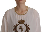 Dolce & Gabbana White Silk Gold DG Crown Crystal Blouse Top