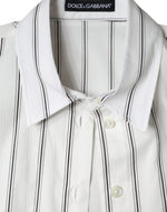 Dolce & Gabbana White Striped Collared Short Sleeve Polo Top