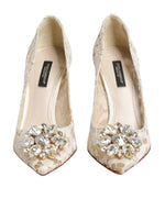 Dolce & Gabbana White Taormina Lace Crystal Heel Pumps Shoes