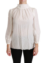 Dolce & Gabbana White Turtle Neck Blouse Shirt Silk Top