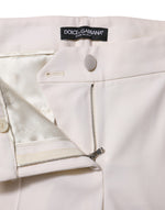 Dolce & Gabbana White Wool Mid Waist Tapered Trouser Pants