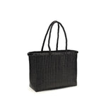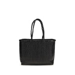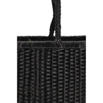 The Big Weave Tote Bag by Dragon Diffusion is a refined and practical accessory made of woven buffalo calfskin that creates vertical lines, characterizing the Weave Big model. This square basket design features a wide entrance without closures, enhancing its convenience of use. Fully unlined, the bag is embellished with a St. Christopher medal hand-stitched on the inside, a symbolic detail of protection and craftsmanship. A versatile model, perfect for any occasion, it combines elegance and functionality.