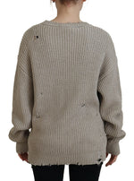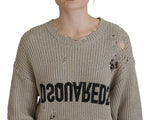 Dsquared² Beige Cotton Knitted Crewneck Pullover Sweater