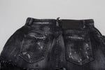 Dsquared² Black Checkered High Waist A-line Denim Mini Skirt