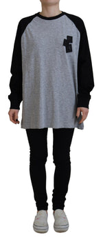 Dsquared² Black Gray Cotton Raglan Long Sleeves Casual Top