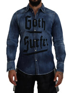 Dsquared² Blue Washed Goth Surfer Print Men Denim Shirt