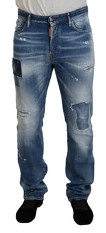 Dsquared² Blue Washed Tattered Straight Fit Casual Denim Jeans