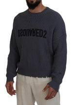 Dsquared² Gray Men Tattered Knitted Pullover Sweater