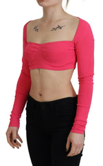 Dsquared² Pink Viscose Knit Square Neck Long Sleeves Top
