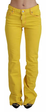 Dsquared² Yellow Cotton Mid Waist Flare Denim Trouser Jeans