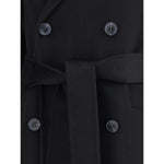 Dynamis Studio’s double-breasted long Coat is a timeless classic revisited with an essential and refined style. Featuring classic lapels and a front button closure, it has a built-in belt to tie at the waist that enhances the silhouette. Two welt pockets complete the design, making it a versatile garment ideal for any occasion.