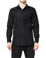 Emporio Armani Black Cotton Long Sleeves Men Formal Dress Shirt
