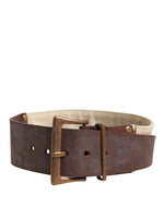 Ermanno Scervino Beige Brown Leather Canvas Metal Buckle Belt