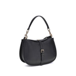 The Pony Shoulder Bag by Etro, made of fine leather, stands out for its double closure: the main one with a magnetic button decorated with the ETRO logo and the Pegasus, engraved with the refined coin minting technique, and the secondary one with a functional metal buckle. The design is completed by the interchangeable handle and shoulder strap, embellished with the Paisley detail at the snap hooks, for a touch of artisanal elegance and versatility.