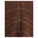 Fabiana Filippi’s Cardigan is a piece with a refined style, featuring a front button closure and ribbed trim at the hem. The sleeves are embellished with maxi ruffled bangs, giving movement and a contemporary touch to the ensemble.