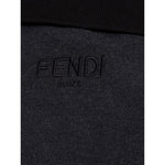 Fendi black short sleeve polo, small black writing with contrasting fluorescent yellow letter and tone-on-tone embroidered logo.