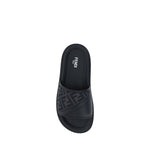The Slide Sandals by Fendi are an elegant interpretation of comfort signed by the celebrated Italian fashion house. Featuring a jacquard front strap that sports the iconic FF logo repeated, this shoe embodies the brand’s distinctive and refined style. The flat sole ensures a comfortable and casual walk, while the sockliner, embellished with the press-on logo, adds an extra touch of exclusivity. Perfect for completing summer looks with a classy detail, it combines practicality and luxury in one accessory.