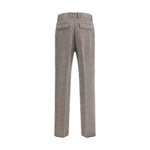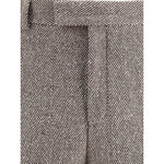 Ferragamo’s wide chevron Pants recalls the timeless elegance of the 1920s with a refined, flowing silhouette. Crafted with tailored construction, it features a wide leg with an ironed crease that enhances the movement of the fabric. Inserted side pockets maintain a clean aesthetic, while back flap and welt pockets add a classic and functional touch. A sophisticated garment perfect for formal or sophisticated looks.